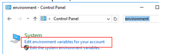On the control panel, search for environment variables: