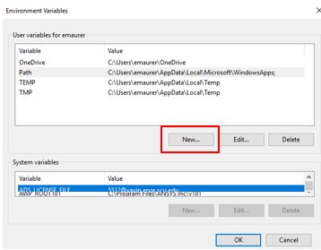 In the top window for User Variables, click New.