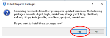If this is the first time you have done this, you may see this notice about installing packages. Say Yes and it will install them.