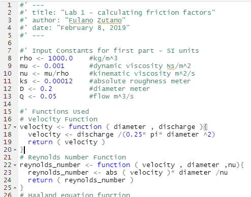 #' title: "LAB 1 - calculating friction factors"